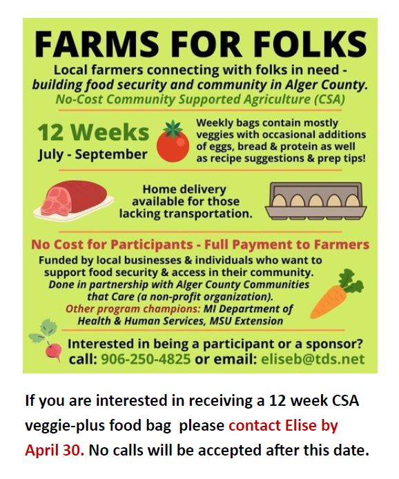 We are so excited about this great program that provides local people in need with local farmers — and locally grown food! Check out the poster below for more information about the 2021 program. Consider participating or sponsoring!